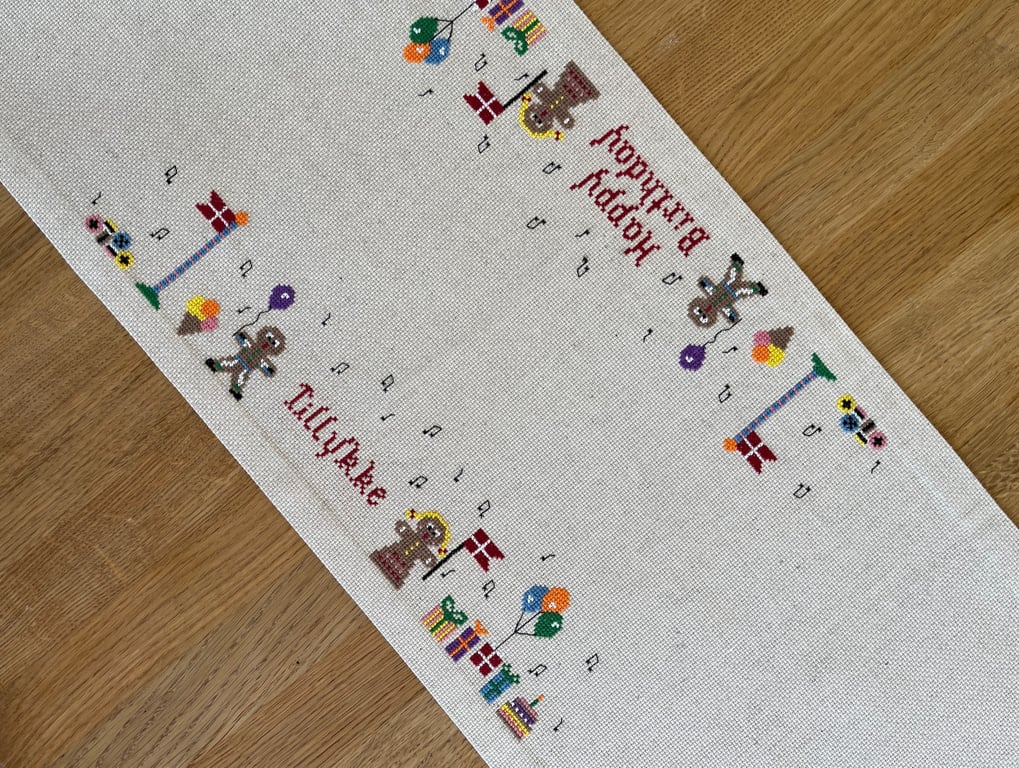 Dansk flag Happy Birthday 2035-dk løber Str. 30 x 100 cm.