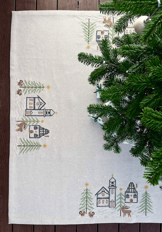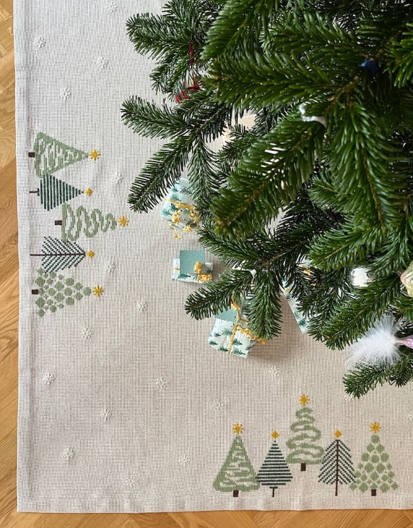 Grøn jul med stil - juletræstæppe 2028-1 Str. 140 x 140 cm.